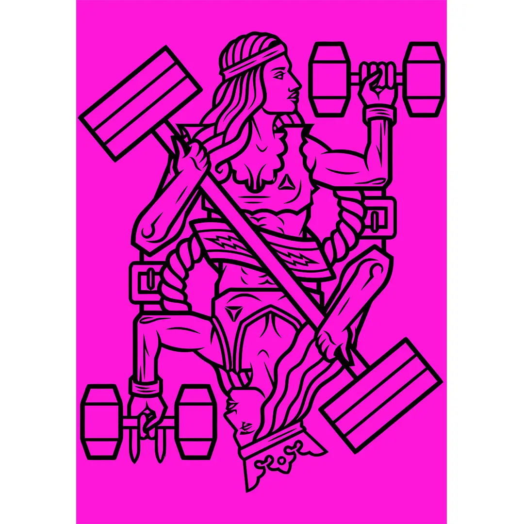 El diseño representa a una poderosa figura femenina en estilo carta de baraja, sosteniendo pesas y transmitiendo determinación, disciplina y energía. Una pieza perfecta para conectar con amantes del fitness, el entrenamiento, el crossfit, la motivación y el estilo urbano.