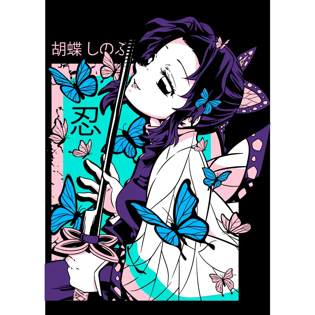 Si eres un emprendedor o dueño de un negocio de personalización, este diseño de Shinobu Kocho es una oportunidad perfecta para atraer a los fanáticos del anime. Este vector está creado con un detalle excepcional, capturando la esencia elegante y única del Pilar Insecto de Demon Slayer. Perfecto para quienes buscan ofrecer productos premium en sus catálogos.